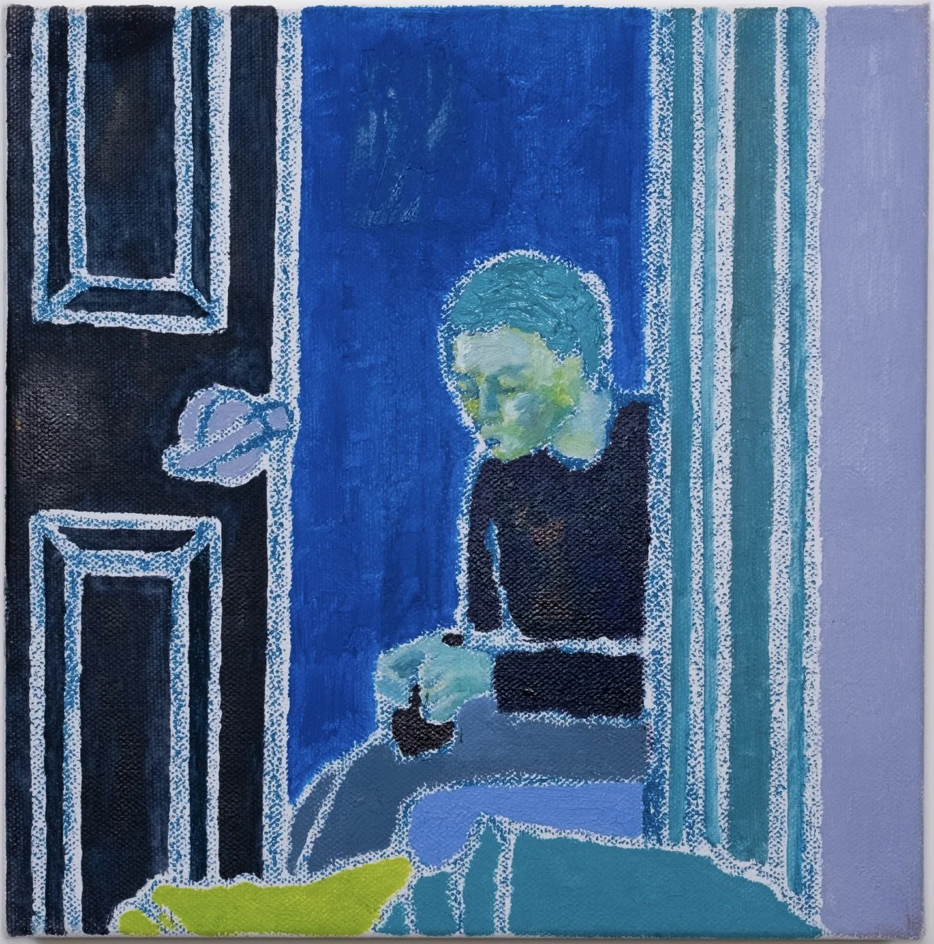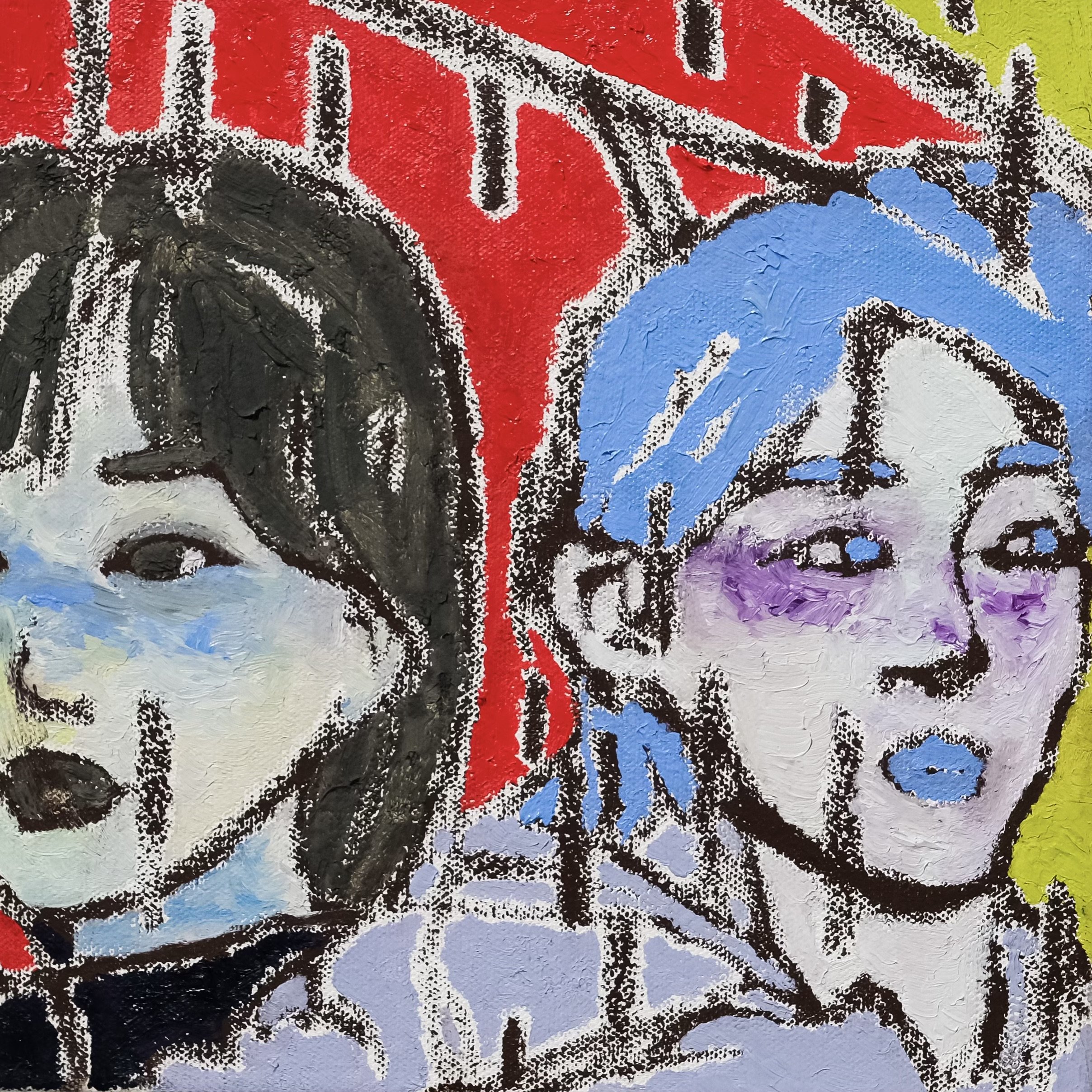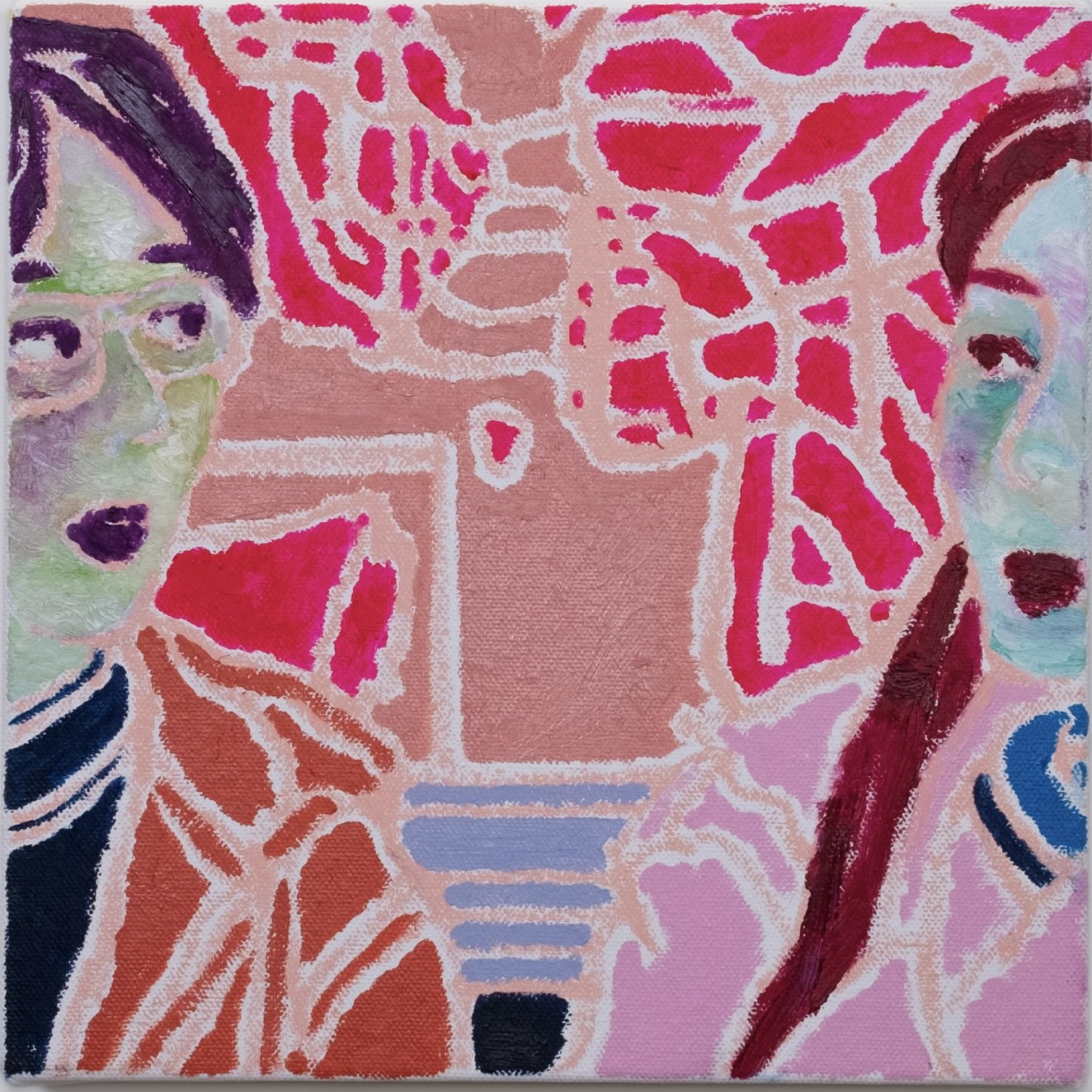 Oil paint and oil pastel on canvas, 10 x 10 in.